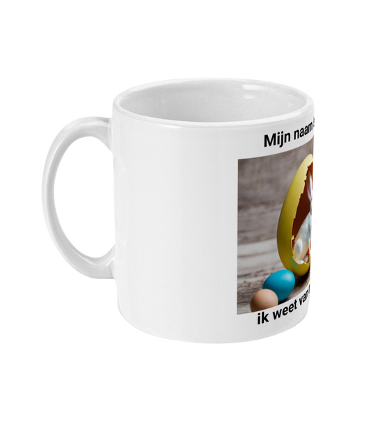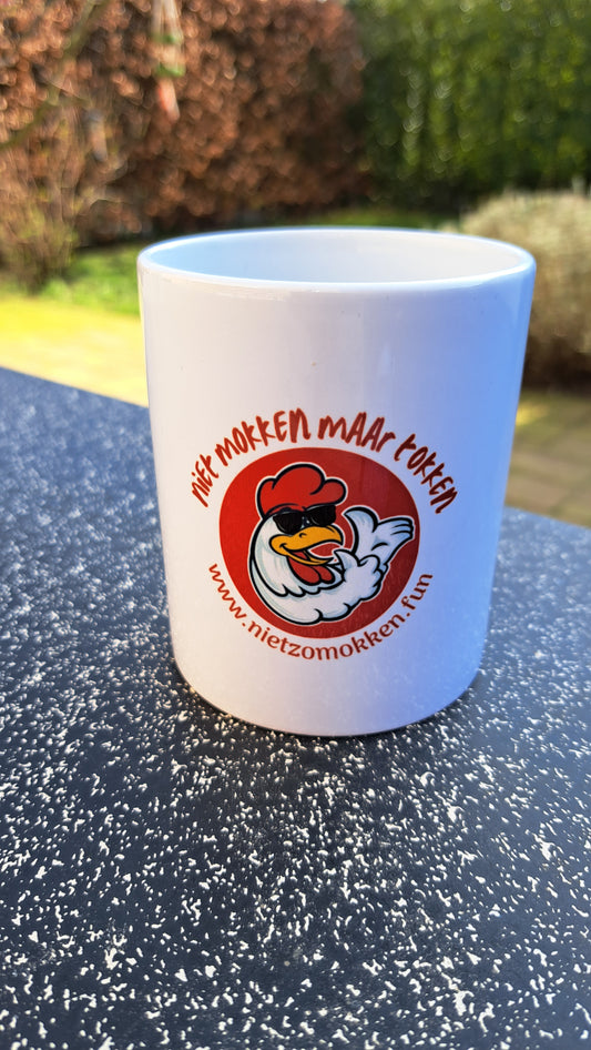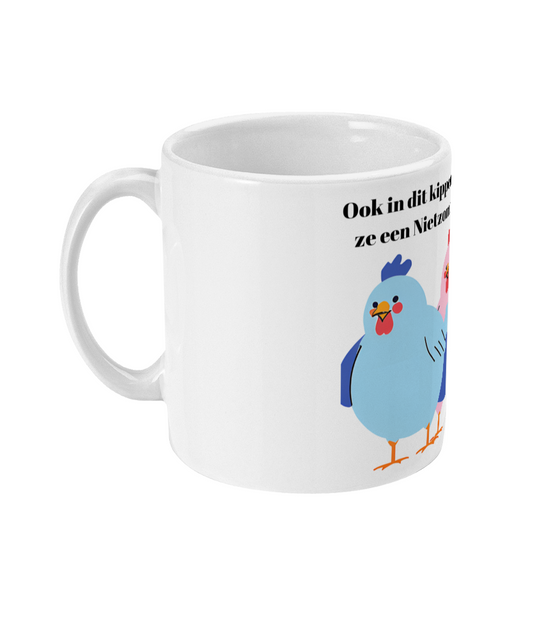 Ook in dit kippenhok hebben ze een Nietzomokken mok!