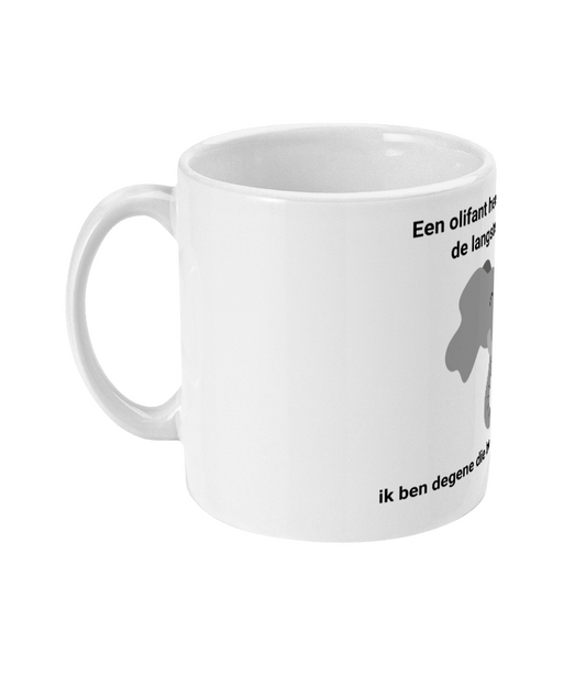 Een olifant heeft dan wel de langste slurf, ik ben degene die bovenop jou durf.