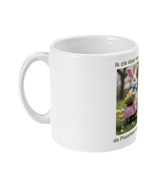 Ik zie daar met luid getoeter de Paashaas op een scooter