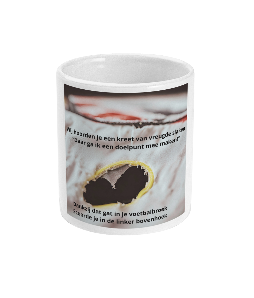 Door dat gat in je voetbalbroek Scoorde je in de linker bovenhoek