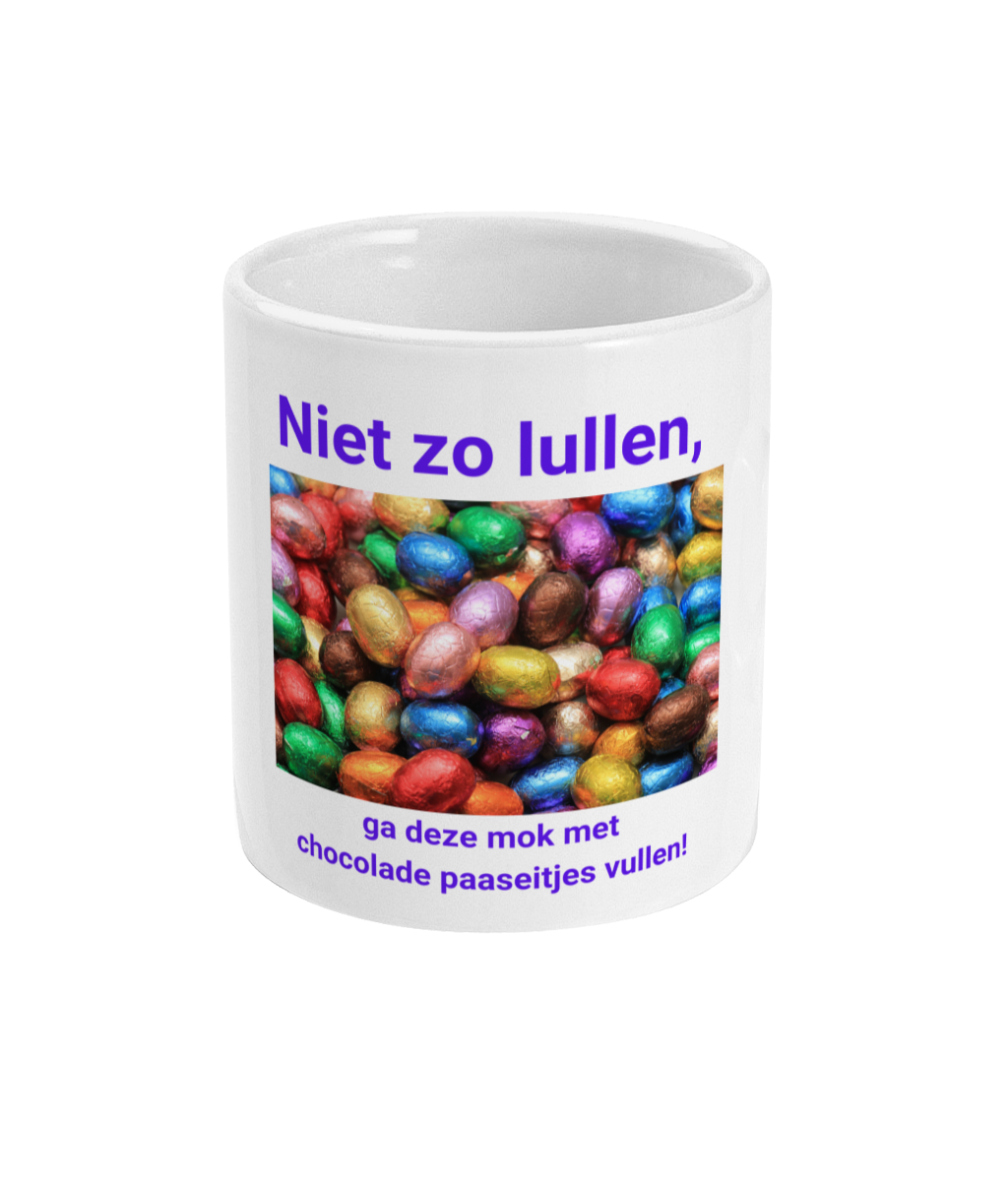 Niet zo lullen, ga deze mok met chocolade paaseitjes vullen!
