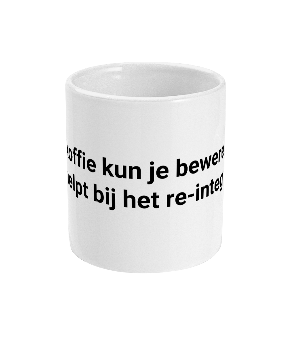 Re-integreren is iets wat je stap voor stap moet doen en een mok koffie is daarbij onmisbaar.
